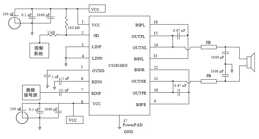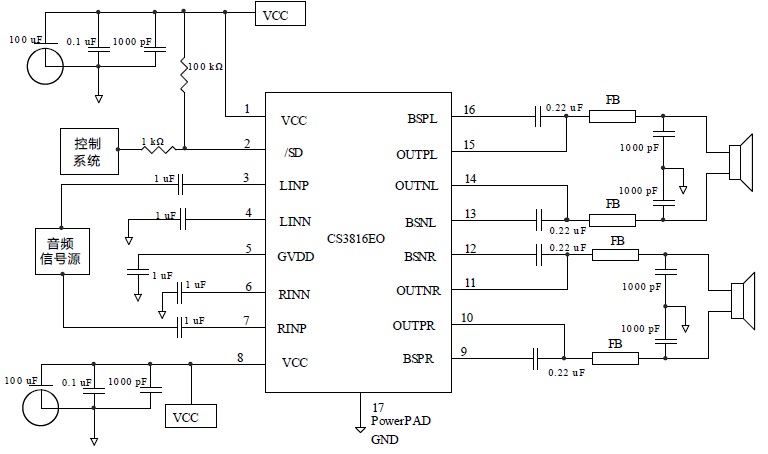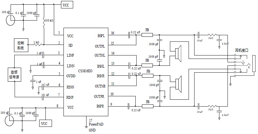當(dāng)前位置:首頁(yè)->產(chǎn)品展示->功放IC->CS3816(無(wú)電感15W立體聲D類音頻功放IC) |