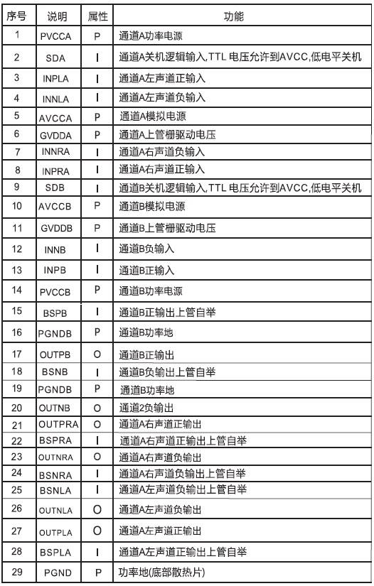 無濾波2X25W立體聲D類功放IC,管腳兼容TPA3110 |