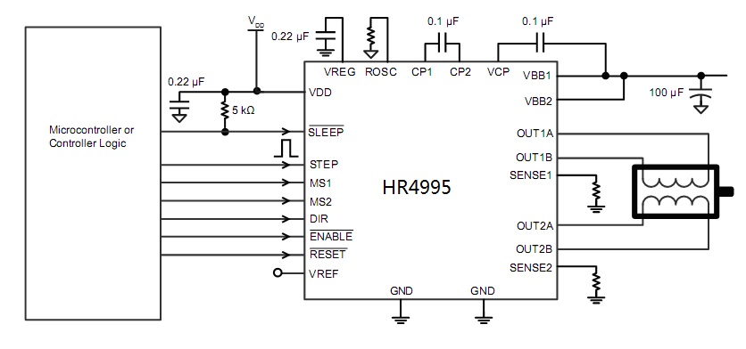 HR4985是一種便于使用的內(nèi)部集成了譯碼器的微步進(jìn)電機(jī)驅(qū)動(dòng)器。其設(shè)計(jì)為使雙極步進(jìn)電機(jī)能夠以全、半、1/4和1/8步進(jìn)操作。步進(jìn)模式由邏輯輸入MSx選擇。輸出驅(qū)動(dòng)能力達(dá)到35V和±1A。HR4985包括一個(gè)能夠控制慢或混合衰減模式的電流調(diào)節(jié)器,其截止時(shí)間固定。 |