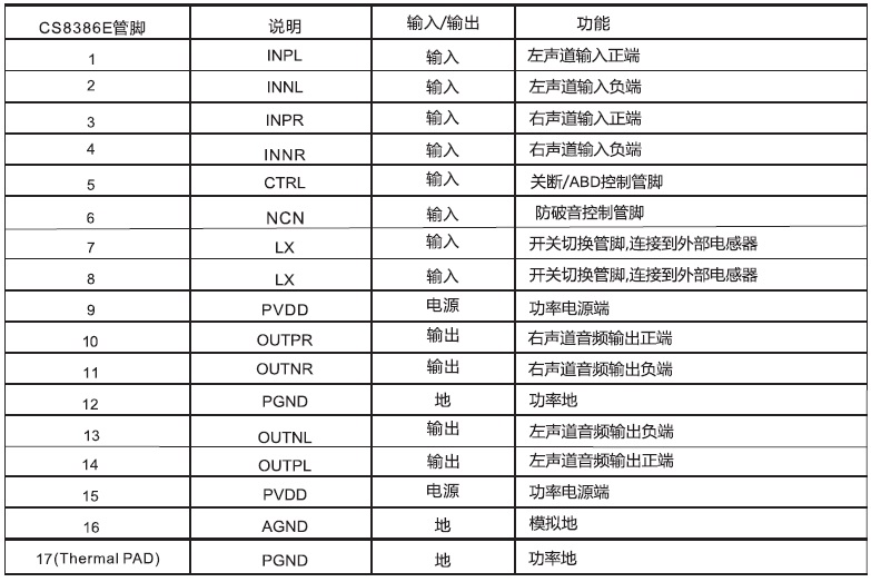 恒定4.8W/2.5V-5.5V(內(nèi)置自適應Charge Pump模塊)/4Ω |