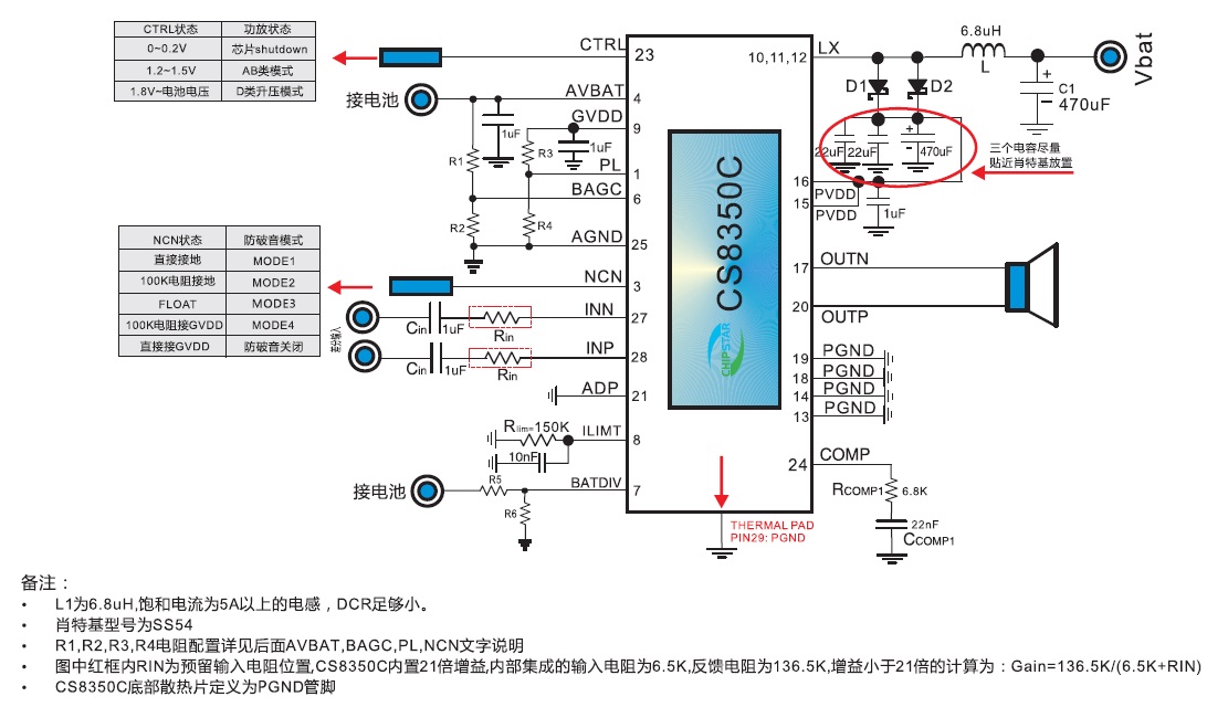 CS8350C的全差分架構(gòu)和極高的PSRR有效地提高對(duì)RF噪聲的抑制能力。無(wú)需濾波器的PWM調(diào)制結(jié)構(gòu)及內(nèi)置的BOOST升壓模塊 ,以及CS8350C采用專(zhuān)有的 AERC((Adaptive Edge Rate Control)技術(shù),在音頻全帶寬范圍內(nèi)極大地降低了EMI的干擾,對(duì)60cm的音頻線(xiàn),在FCC的標(biāo)準(zhǔn)下具有超過(guò)20dB的裕量,另外CS8350C內(nèi)置了過(guò)流保護(hù),短路保護(hù)和過(guò)熱 保護(hù),有效的保護(hù)芯片在異常的工作條件下不被損壞。CS8350C提供了纖小的的TSSOP28-PP封裝形式供客戶(hù) 選擇,其額定的工作溫度范圍為-40℃至85℃。
