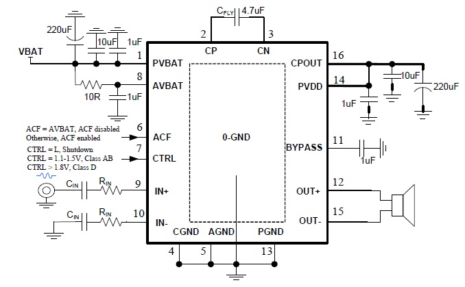 內(nèi)置自適應(yīng)同步升壓和防破音功能的3W全頻段D類及AB類音頻功率放大器 |
