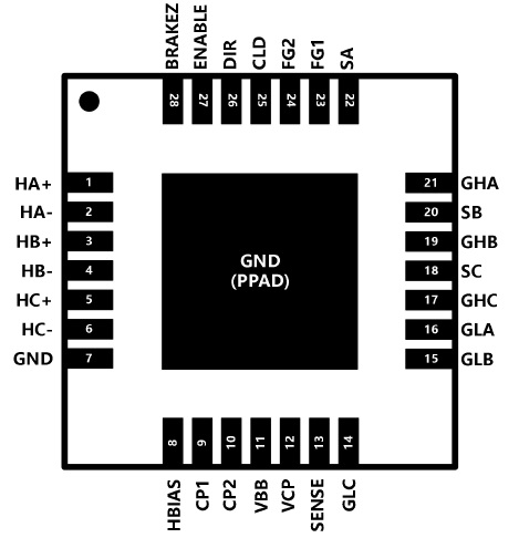 18V、3A三相無刷無感驅(qū)動(dòng)、180˚正弦,集成驅(qū)動(dòng)算法+預(yù)驅(qū)+MOS |