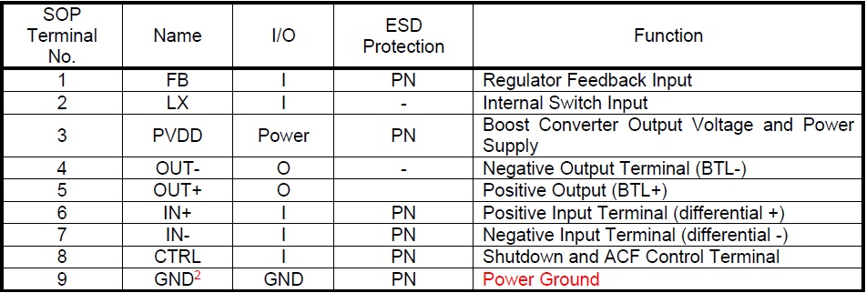 9.0W (VBAT=3.7V, PVDD = 7.5V, RL=3Ω,