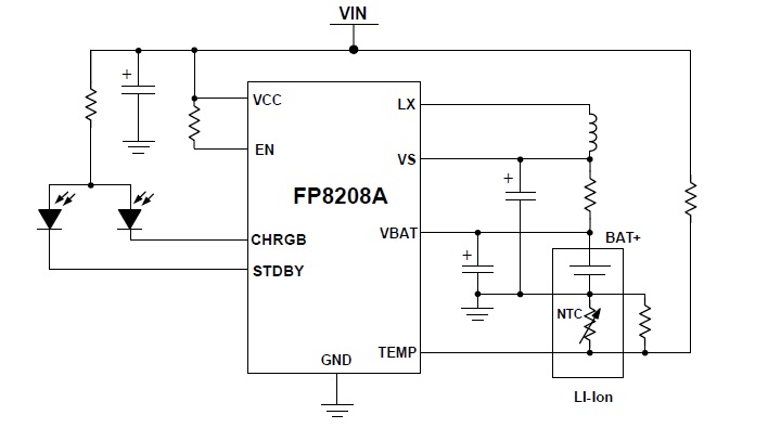 FP8208A 是一款開關(guān)模式降壓型鋰電池充電管理芯片,輸入電壓應(yīng)用適合5V 交流適配器,可對單節(jié)鋰離子電池進(jìn)行定電流或是恒壓充電,其最大充電電流為3.5A,最大充電電流可由外部電阻進(jìn)行設(shè)定 |
