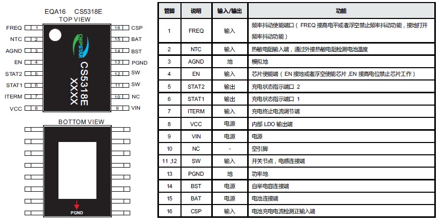 CS5363E是一款20V耐壓,1~4節(jié)鋰電池或1~5節(jié)磷酸鐵鋰電池異步降壓型充電管理IC。 集成功率MOS, 具有最大4A的充電電流能力,充電電流可以通過外部電阻靈活可調(diào)。恒壓充電電壓由外部電阻分壓網(wǎng)絡(luò)設(shè)置,實(shí)現(xiàn)對(duì)多類型多節(jié)電池的充電管理。 |
