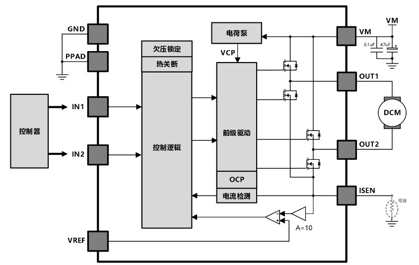3.6A單通道刷式直流電機驅(qū)動IC |