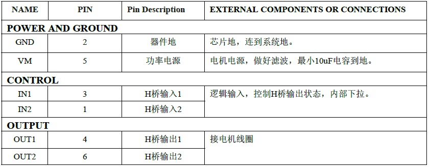 低電壓單通道H橋電機驅(qū)動芯片 |
