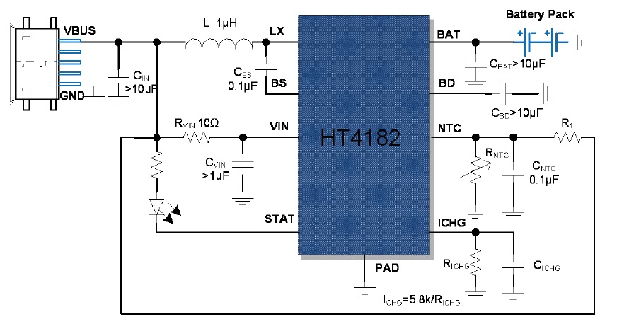 HT4188是一款具有電量均衡功能的5V輸入高效同步升壓型1.2A雙節(jié)鋰電池充電器 |