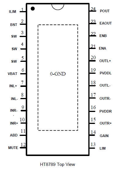 HT8789(內(nèi)置自適應(yīng)動(dòng)態(tài)升壓的9W雙聲道F類音頻功放IC) |