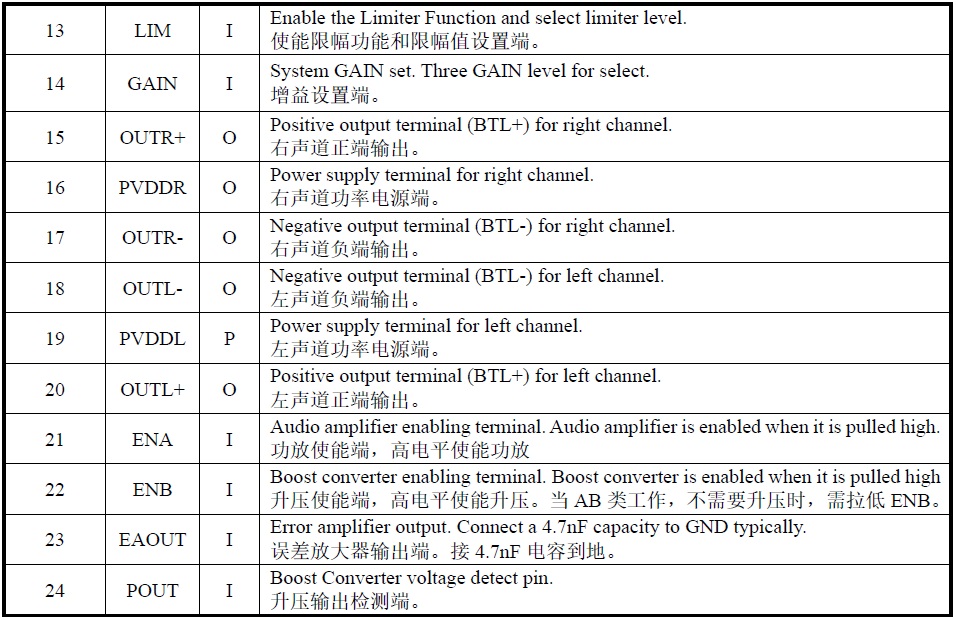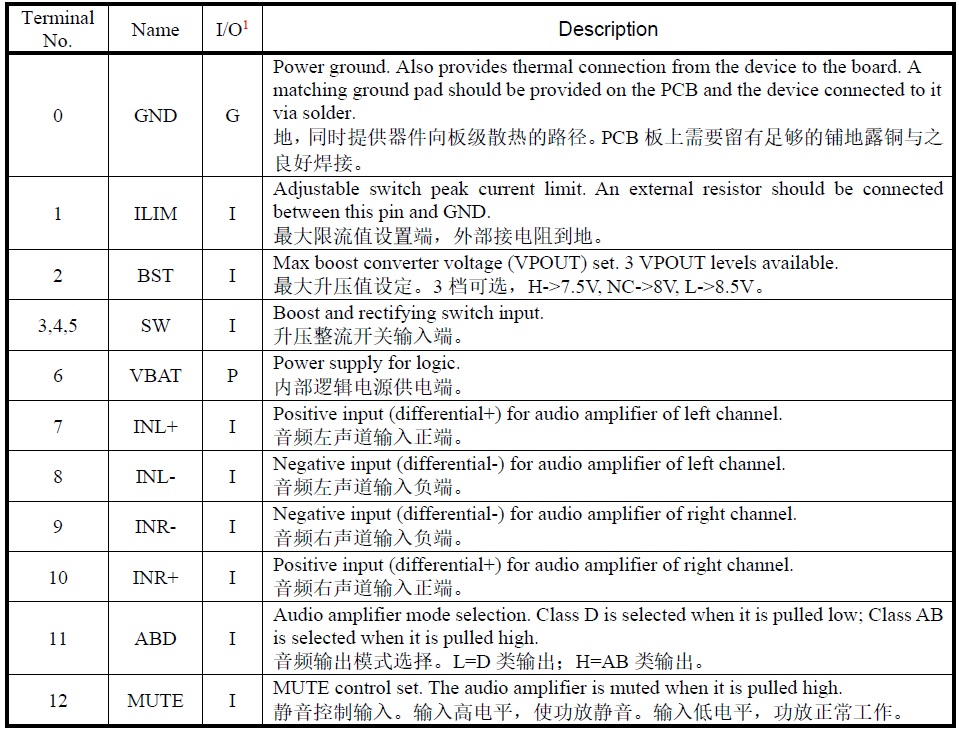 7.0W/2.8V-5.5V(內(nèi)置升壓模塊)/4Ω |
