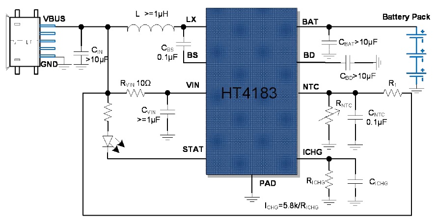 HT4183是一款5V輸入,升壓模式的充電管理IC, 適用于三節(jié)串聯(lián)鋰電池。 |