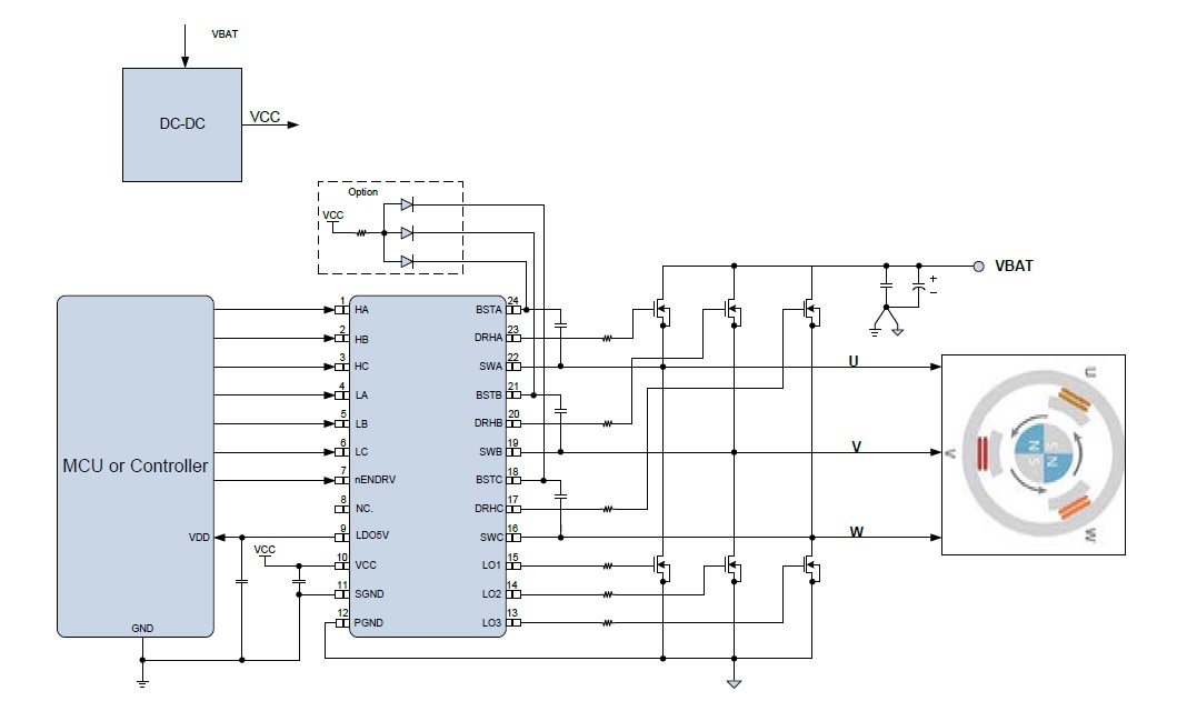 壓范圍內(nèi)驅(qū)動N 溝道功率MOSFET,且電機電源最高可支持到