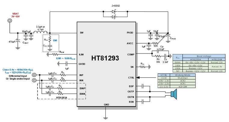 內(nèi)置自適應(yīng)同步升壓和防破音功能的3W全頻段D類及AB類音頻功率放大器 |