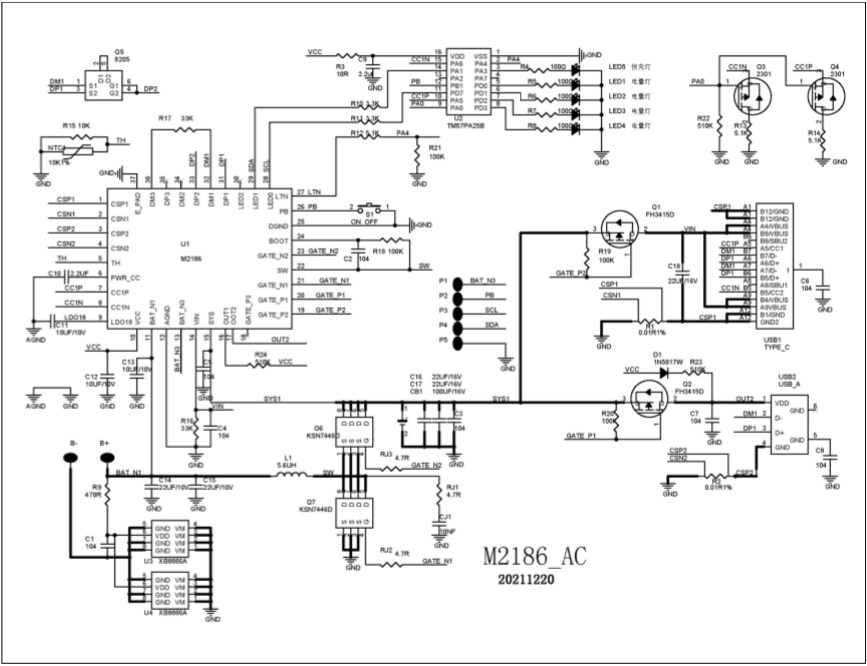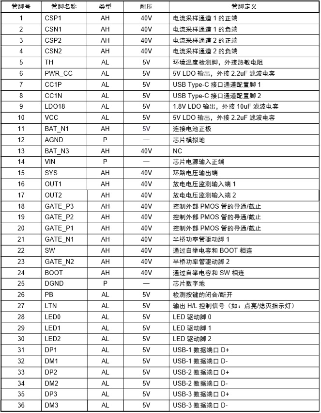 2-4節(jié)電池快充充電管理SOC ,內(nèi)置PD3.0、PD2.0、QC3.0、QC2.0、BC1.2 DCP、UFCS等協(xié)議 |