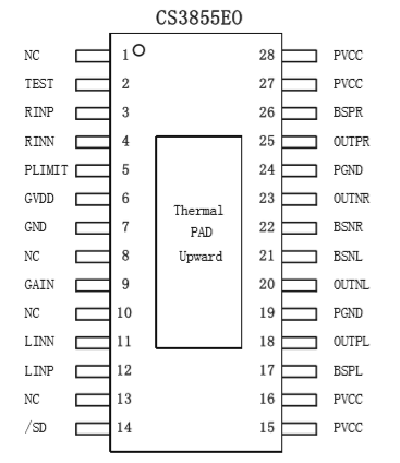 CS3855EO 是一款典型輸出功率為55W立體聲的D類音頻功率放大電路,適用于拉桿音箱、高級(jí)桌面音響等場合。