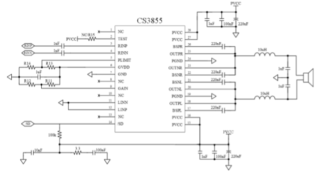 CS3855EO是一款典型輸出功率為55W立體聲的D類音頻功率放大電路,適用于拉桿音箱、高級(jí)桌面音響等場合。 |
