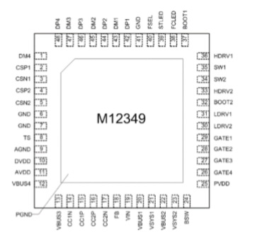 M12369 是一款面向大功率快充應(yīng)用的電源管理 SOC,集成了微處理器、雙路降壓變換器、快充協(xié)議控制 器,支持 PD3.1、QC3.0、SCP、FCP、AFC、BC1.2 DCP 等全部主流快充協(xié)議,結(jié)合少量元件即可組成雙C 口的 140W大功率快充解決方案;輔以 DC-DC 芯片,還可擴(kuò)展為3路獨(dú)立的C+C+AA多口大功率快充解決方案。