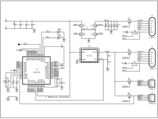 M12150是一款支持PD3.1的雙口全兼容快充協(xié)議IC,集成了微處理器、USB Type-C 接口、快充協(xié)議控制器、高精度電流采樣電阻,支持DFP/Source功能。利用TL431和光耦組成的反饋電路調(diào)整前級(jí)AC-DC的輸出電壓,搭載極少的元件可以組成C口協(xié)議調(diào)壓、A口降壓的 C+A獨(dú)立雙口功率可分配的快充解決方案。 |