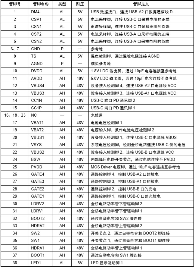 2-4節(jié)電池快充充電管理SOC ,內(nèi)置PD3.0、PD2.0、QC3.0、QC2.0、BC1.2 DCP、UFCS等協(xié)議 |