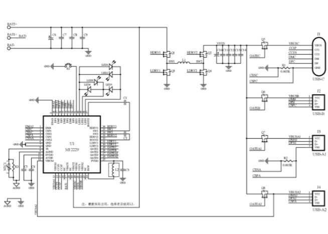 雙路3-8節(jié)多串升降壓140W大功率移動電源SOC |