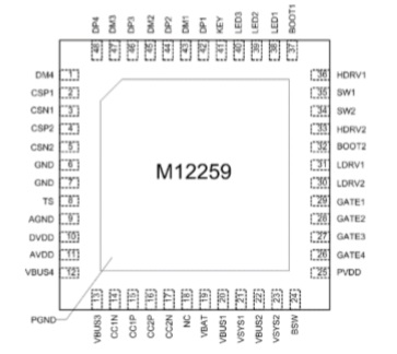 M12239是一款面向雙路獨立的多電芯大功率移動電源應用的專用 SOC,集成了同步升降壓變換器、電池 充放電管理模塊、顯示模塊、電量計算模塊,提供最大 140W 輸入/輸出功率,支持 PD3.1、QC3.0、AFC、FCP、SCP、BC1.2 DCP 等主流快充協(xié)議,并提供過壓/欠壓、過充/過放、過溫等完備的保護功能。配合極簡的外圍 電路,即可組成單 C口大功率移動電源。輔以DC-DC芯片,可以擴展為3-8串電池雙路獨立的多口大功率移動電源。 |