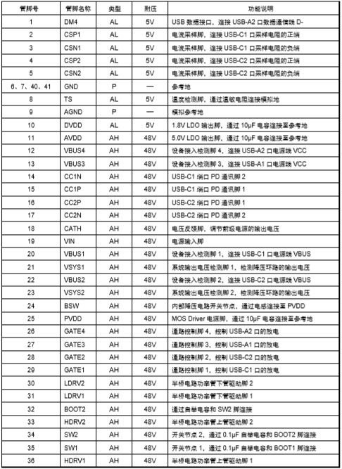 2-4節(jié)電池快充充電管理SOC ,內(nèi)置PD3.0、PD2.0、QC3.0、QC2.0、BC1.2 DCP、UFCS等協(xié)議 |