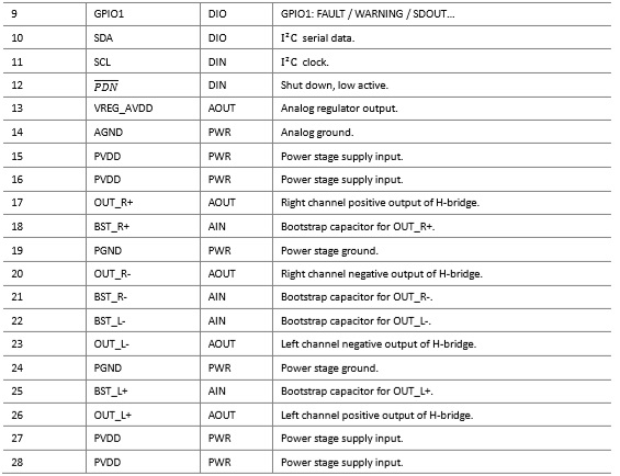 I2S數(shù)字輸入、3.1W單聲道D類音頻功率放大器 |