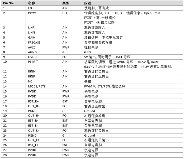 - 低靜態(tài)電流: <24mA, PVDD=24V, 輸出LC =10uH+0.68uF