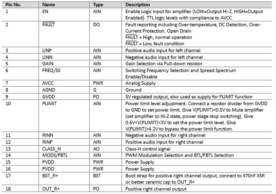 - THD+N ≤ 0.02% 測試條件: 1W, 1kHz, 4Ω, PVDD = 24V