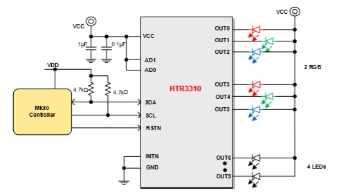 HTR3306是一款6路多功能LED驅(qū)動(dòng)器和 GPIO控制器, 2.5V~5.5V電源供電。10個(gè)IO端 口中的任何一個(gè)都可以配置為L(zhǎng)ED模式或 GPIO模式。此外,任何GPIO都可以單獨(dú)配置 為輸入或輸出。 |