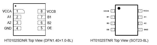 HT0102是一款2路雙向電平轉(zhuǎn)換器,其使用兩個(gè)獨(dú)立的供電VCCA和VCCB。電壓較低的電平信號(hào)接入A端口,支持1.65V~5.5V電壓,其對(duì)應(yīng)VCCA; 電壓較高的電平信號(hào)接入B端口,支持2.3V~5.5V電壓,其對(duì)應(yīng)VCCB。 |