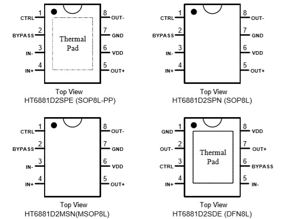 HT6881是一款低EMI的,防削頂失真的,單聲道免濾波D類音頻功率放大器。在6.5V電源,10% THD+N,4Ω負載條件下,輸出4.7W功率,在各類音頻終端應(yīng)用中維持高效率并提供AB類放大器的性能。