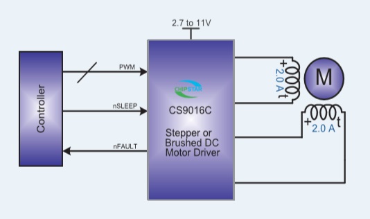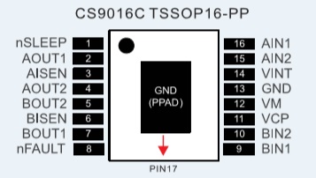 CS9016 CS9016C為玩具、打印機(jī)和其它電機(jī)一體化應(yīng)用提供一種雙通道電機(jī)驅(qū)動(dòng)方案。 TSSOP-16 2.7V-11V 雙通道H橋電機(jī)驅(qū)動(dòng)芯片 DRV8833