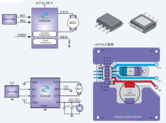 CS9016C為玩具、打印機(jī)和其它電機(jī)一體化應(yīng)用提供一種雙通道電機(jī)驅(qū)動(dòng)方案。 |