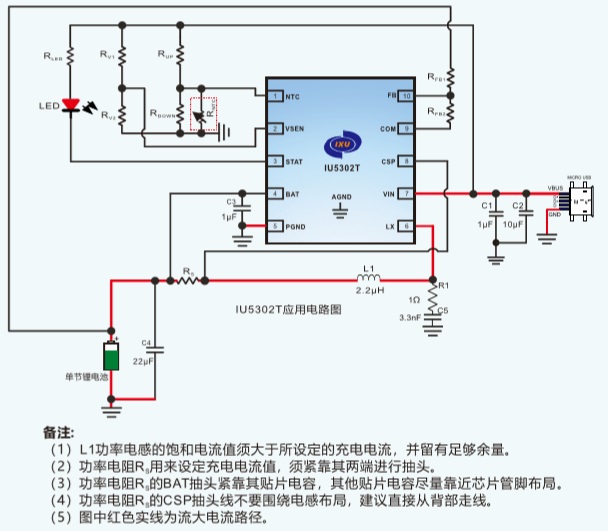 IU5302TC有完善的保護(hù)功能,包括輸入欠壓/過壓保護(hù)、電池過壓和短路保護(hù)、電池溫度保護(hù)NTC功能、芯片溫度保護(hù), 充電超時(shí)保護(hù)。此外芯片通過外接的LED指示燈對充電過程實(shí)現(xiàn)全程監(jiān)控。采用 DFN2X2_10L封裝。