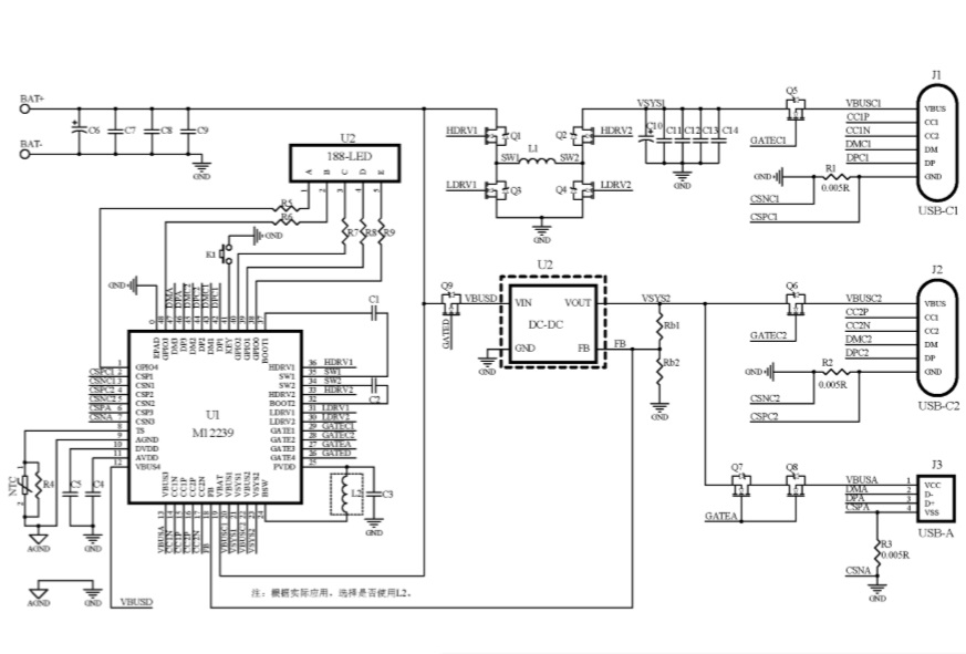 單路2串升降壓30W移動(dòng)電源SOC |