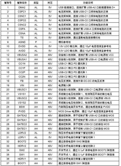 M12368 M12368是一款面向大功率快充應(yīng)用的電源管理 SOC,集成了微處理器、雙路降壓變換器、快充協(xié)議控制 器,支持 PD3.1、QC3.0、SCP、FCP、AFC、BC1.2 DCP 等全部主流快充協(xié)議,結(jié)合少量元件即可組成雙C口的 140W 大功率快充解決方案;輔以 DC-DC 芯片,可擴(kuò)展為三路獨(dú)立的 140W C+C+AA 多口快充解決方案 QFN-48 5V-42V 降壓型PD3.1 C+C+AA 多口快充 SOC