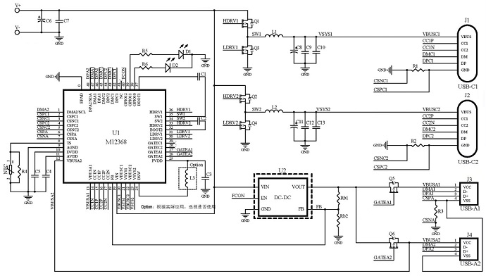 產(chǎn)品名稱: M12368(集成PD3.1等快充協(xié)議、降壓型C+C+AA多口充電器IC)