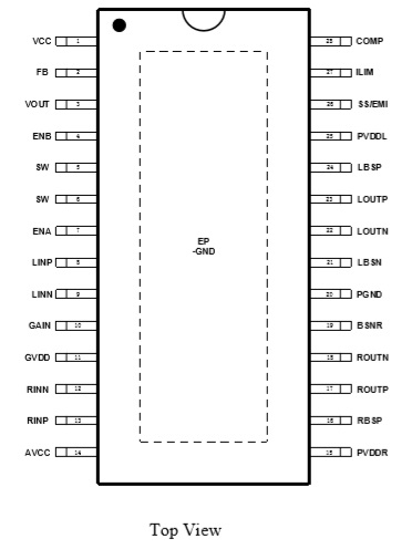 單鋰電3.7V:20W (VOUT=12V, THD+N = 10%)