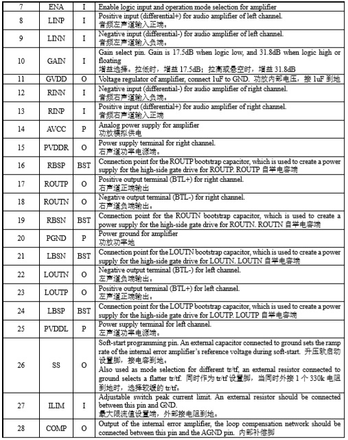 管腳排列及定義