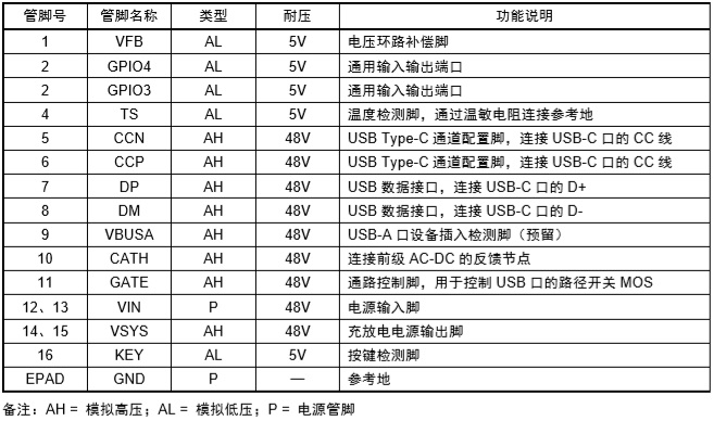 2-4節(jié)電池快充充電管理SOC ,內(nèi)置PD3.0、PD2.0、QC3.0、QC2.0、BC1.2 DCP、UFCS等協(xié)議 |