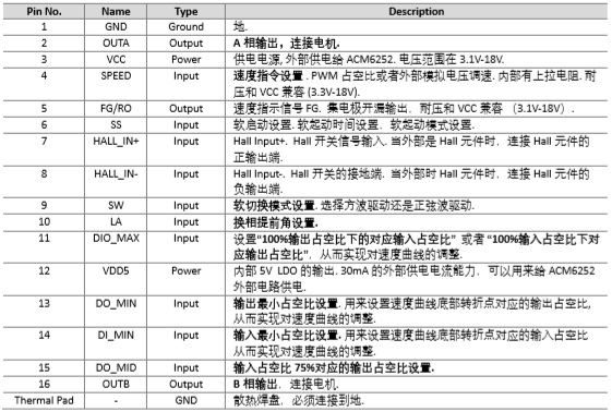 ACM6252是一款內(nèi)置H橋功率MOS管的單相無刷電機(jī)驅(qū)動芯片. ACM6252支持可以調(diào)整的速度曲線,正弦波驅(qū)動保證直流風(fēng)扇靜音高效.