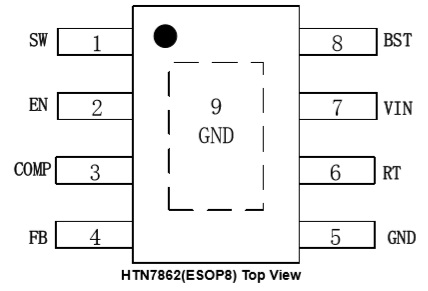 HTN7862提供逐周期電流限制、熱關(guān)斷保護(hù)、 輸出過壓保護(hù)、輸出過載保護(hù)和輸入電壓欠壓 保護(hù)。該設(shè)備采用ESOP8封裝。
