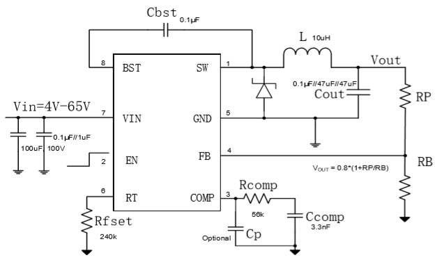 HTN7862是3A降壓轉(zhuǎn)換器,具有從4V到65V的寬輸入電壓,集成了260mΩ高側(cè)MOSFET。HTN7862采用峰值電流模式控制,支持跳周期調(diào)制(PSM),有助于轉(zhuǎn)換器在輕負(fù)載下實現(xiàn)高效率。