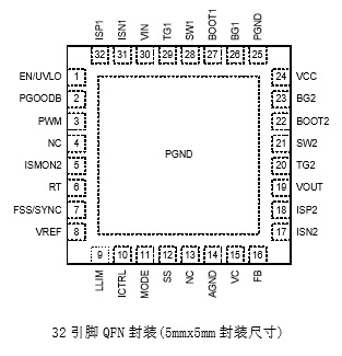 YX22105采用5mmx5mm 32引腳QFN封裝。