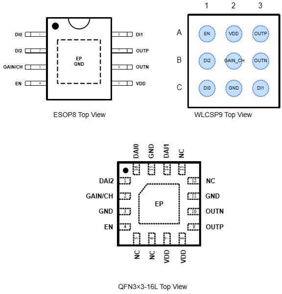 該產(chǎn)品提供WLCSP9/QFN-16/ESOP8封裝。