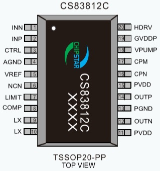CS83812C提供了纖小的的TSSOP20-PP封裝形式供客戶選擇,其額定的工作溫度范圍為-40℃至85℃。