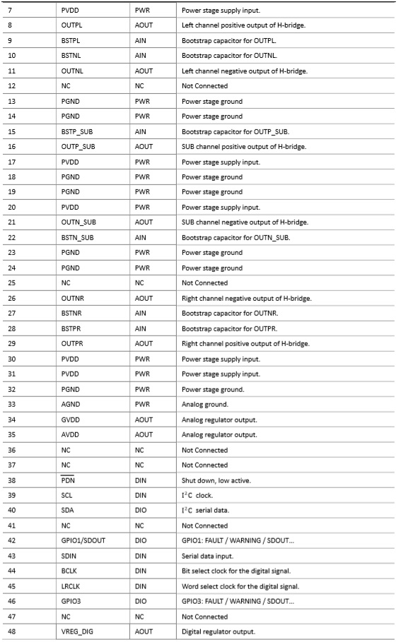 -THD+N≤0.02%@1W, 1kHz, PVDD=12V