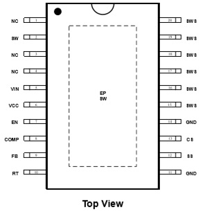 HTN865B通過(guò)RT管腳外接電阻調(diào)整開(kāi)關(guān)頻率, 開(kāi)關(guān)頻率范圍為100KHz-1000KHz。